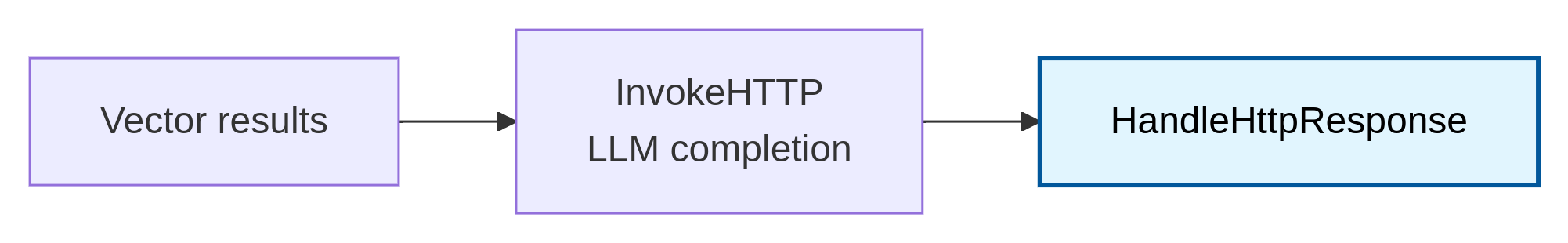 - InvokeHTTP (LLM Completion): NiFi sends this context along with the user’s original query to the LLM endpoint (OpenAI, Anthropic, etc.).