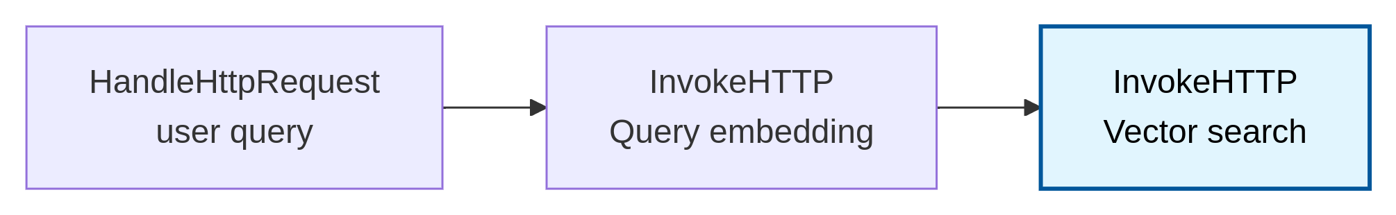 - Vector Search: NiFi passes the embedding to the vector database, which performs semantic similarity search.